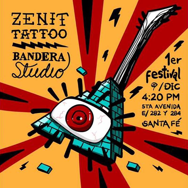 Zenit Tattoo es un estudio de tatuajes y piercings, ubicado en Santa Fe, en La Habana. Según ellos mismo describen en su página oficial de Facebook, su estudio es un “lugar único y especial para plasmar arte en tu piel”. Bandera Studio, por su parte, es un sello de gestión colaborativa encaminado a la producción, divulgación y distribución de música cubana en general, con interés especial en el Rock&Roll.